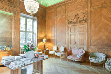 Ehemaliger Jagdsitz und Gutshof mit fantasievoller Architektur auf rund 1.800 Quadratmetern. Die Räume sind geprägt von teils originalem Mobiliar und historischem Charakter. Zum Anwesen gehört ein 26 Hektar großer Landschaftspark mit Garten, Gehegen und Anbindung an einen See – die abgeschiedene Lage ist besonders geeignet für Filmproduktionen.